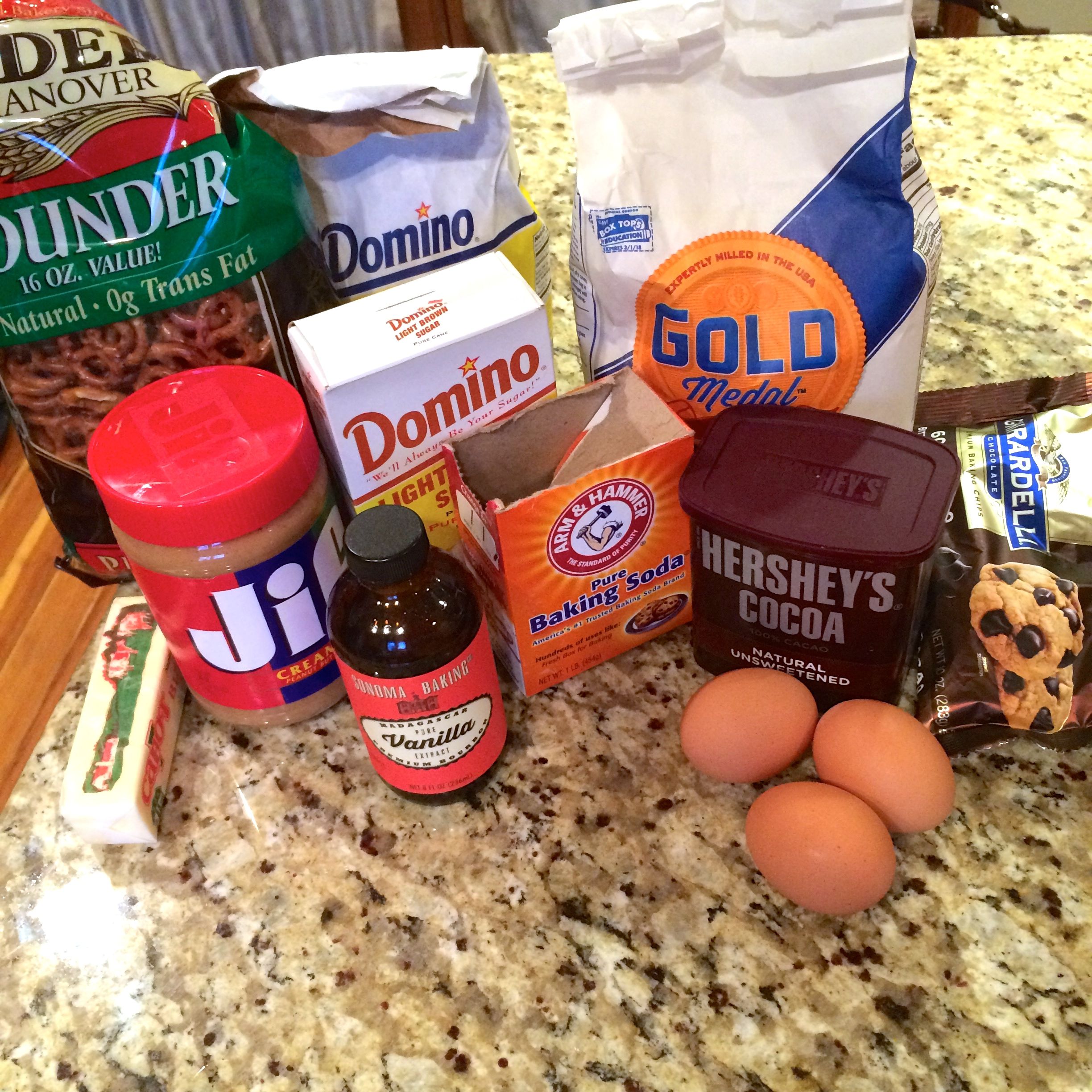 - 3/4 cup crushed pretzels (about 1 1/2 cups mini twists)