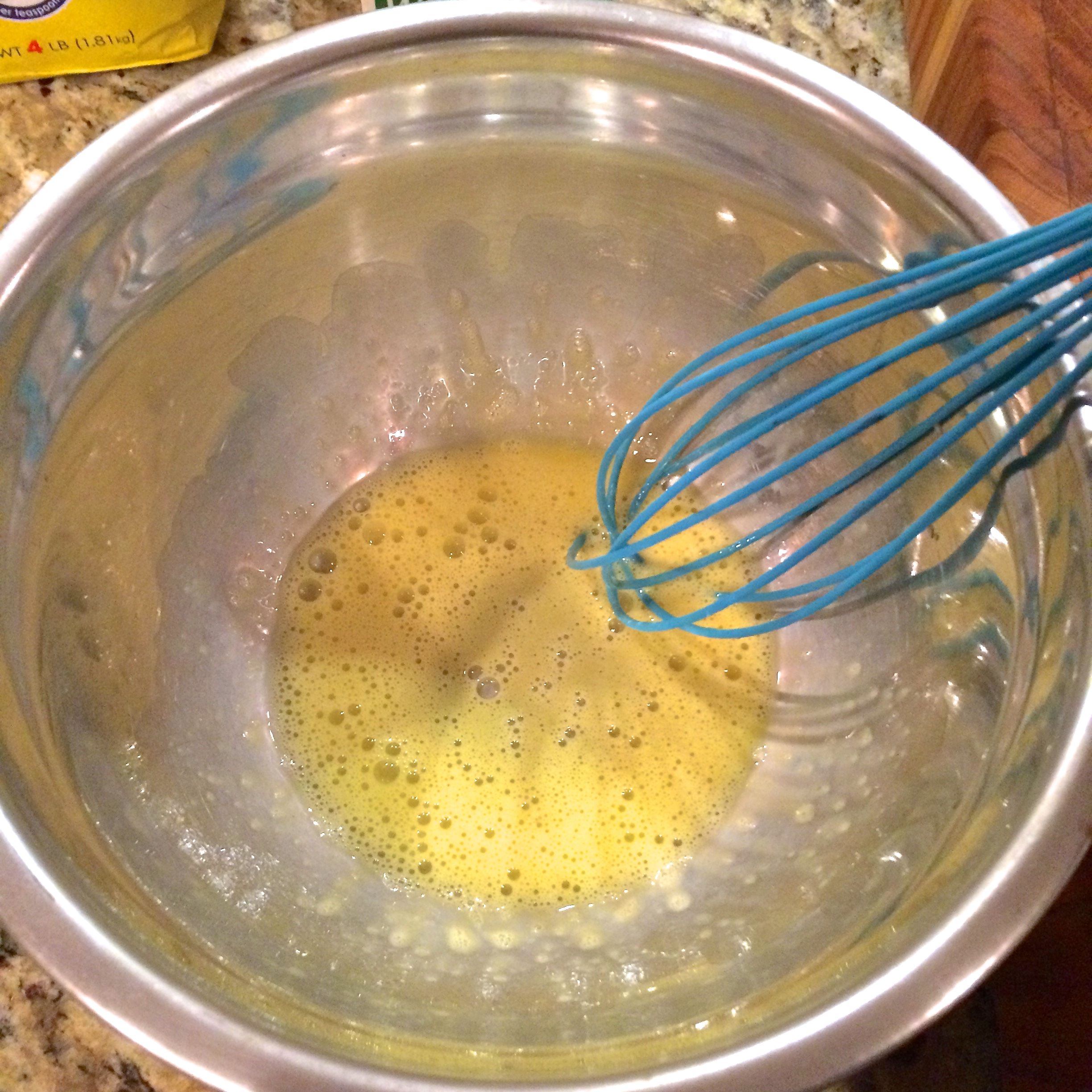 Whisk the egg until it becomes light in color. Add in the sugar, and whisk until combined.