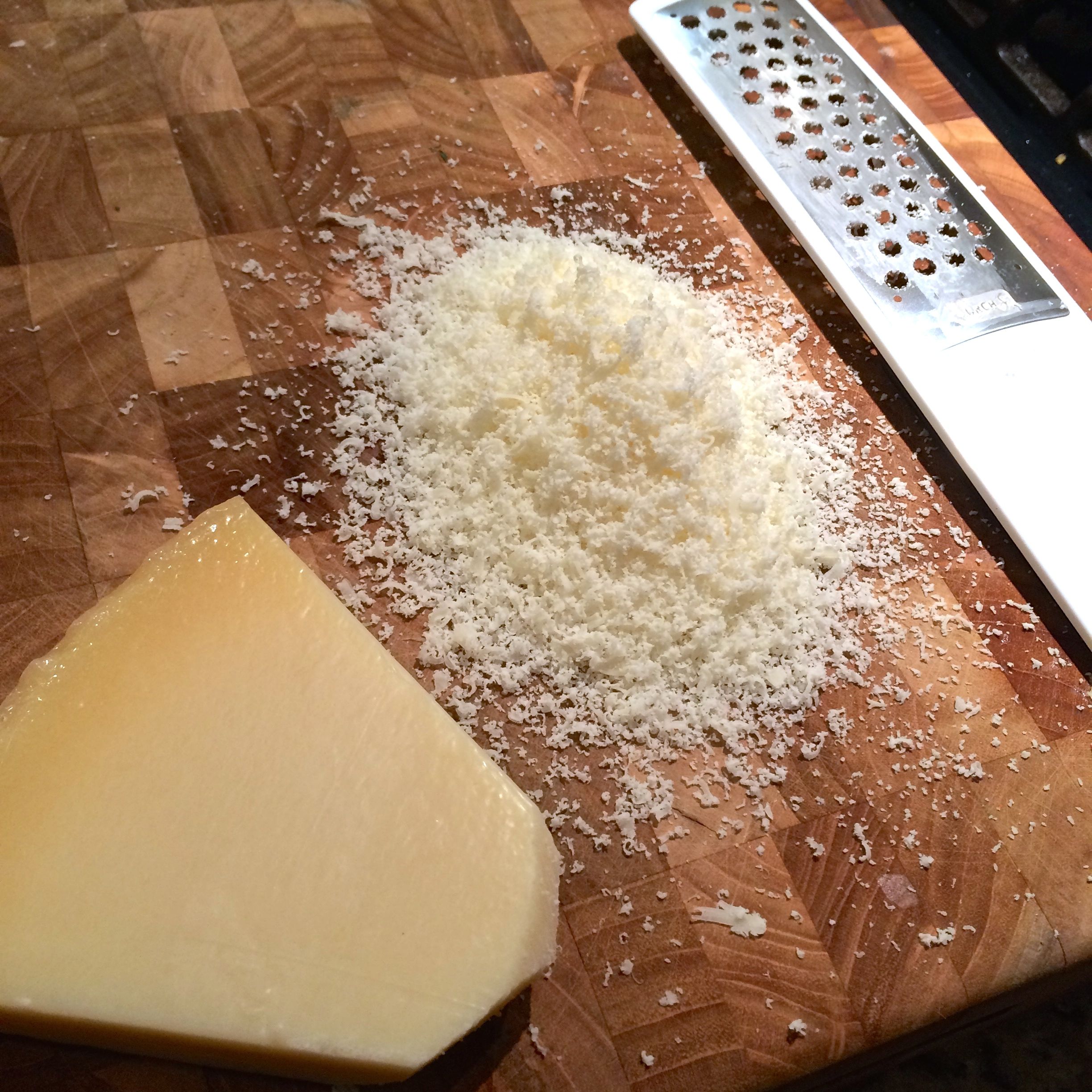 Grate parmesan cheese.