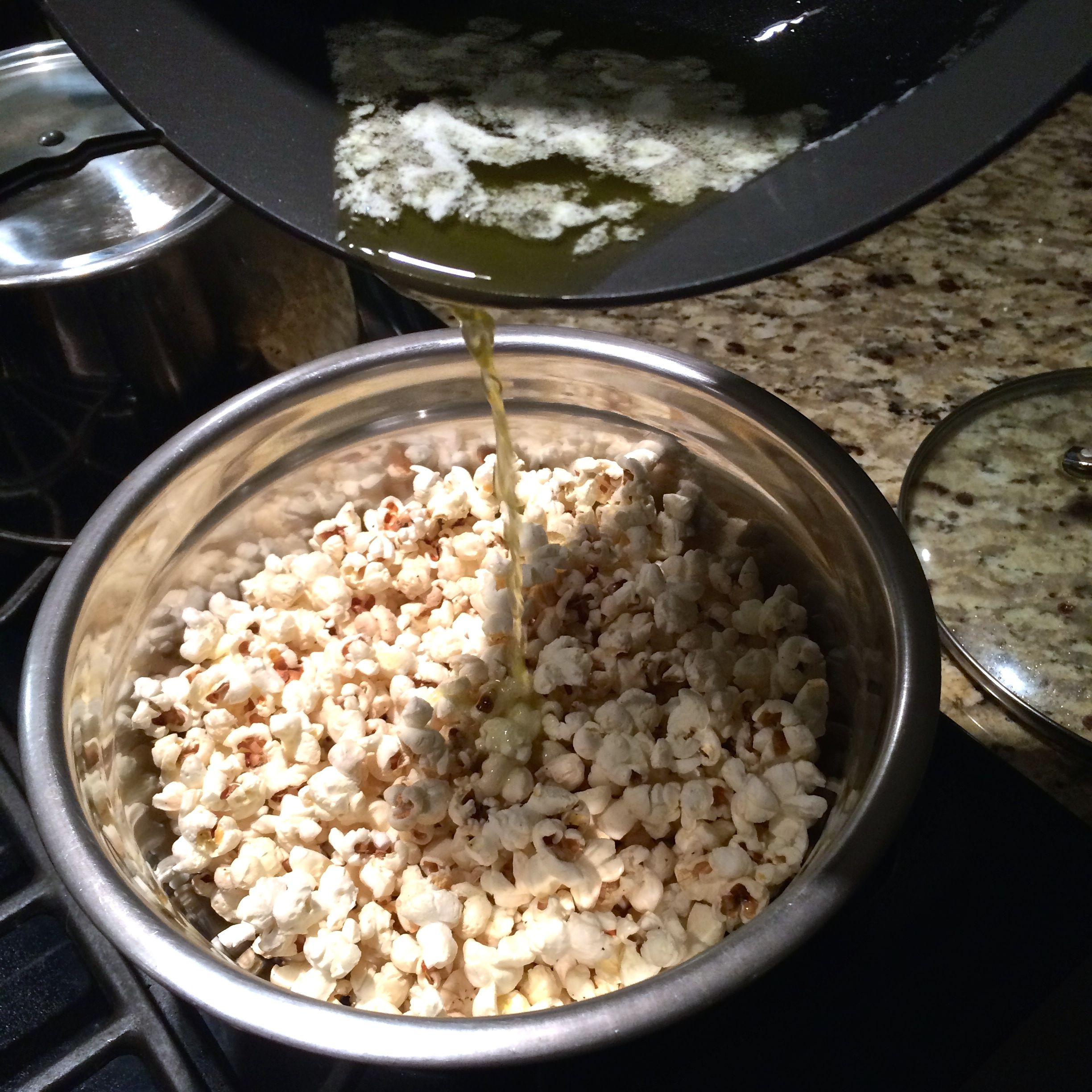 Once the popping comes to a lull (one pop every second or two), remove from heat and it’s ready to go.