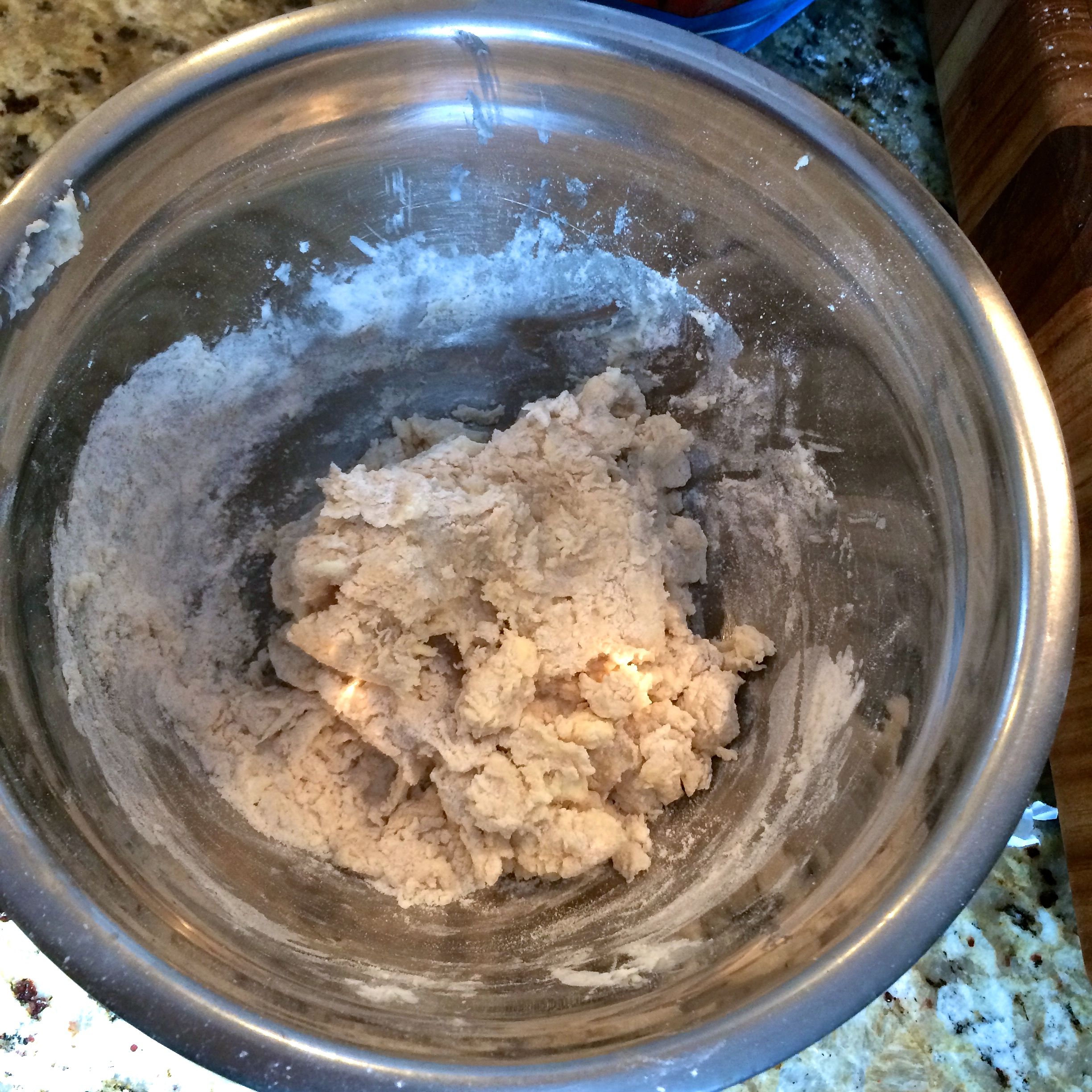 Add in the milk. With your hands help the milk work its way into the dough. Again, don’t overwork it…it will be very shaggy.