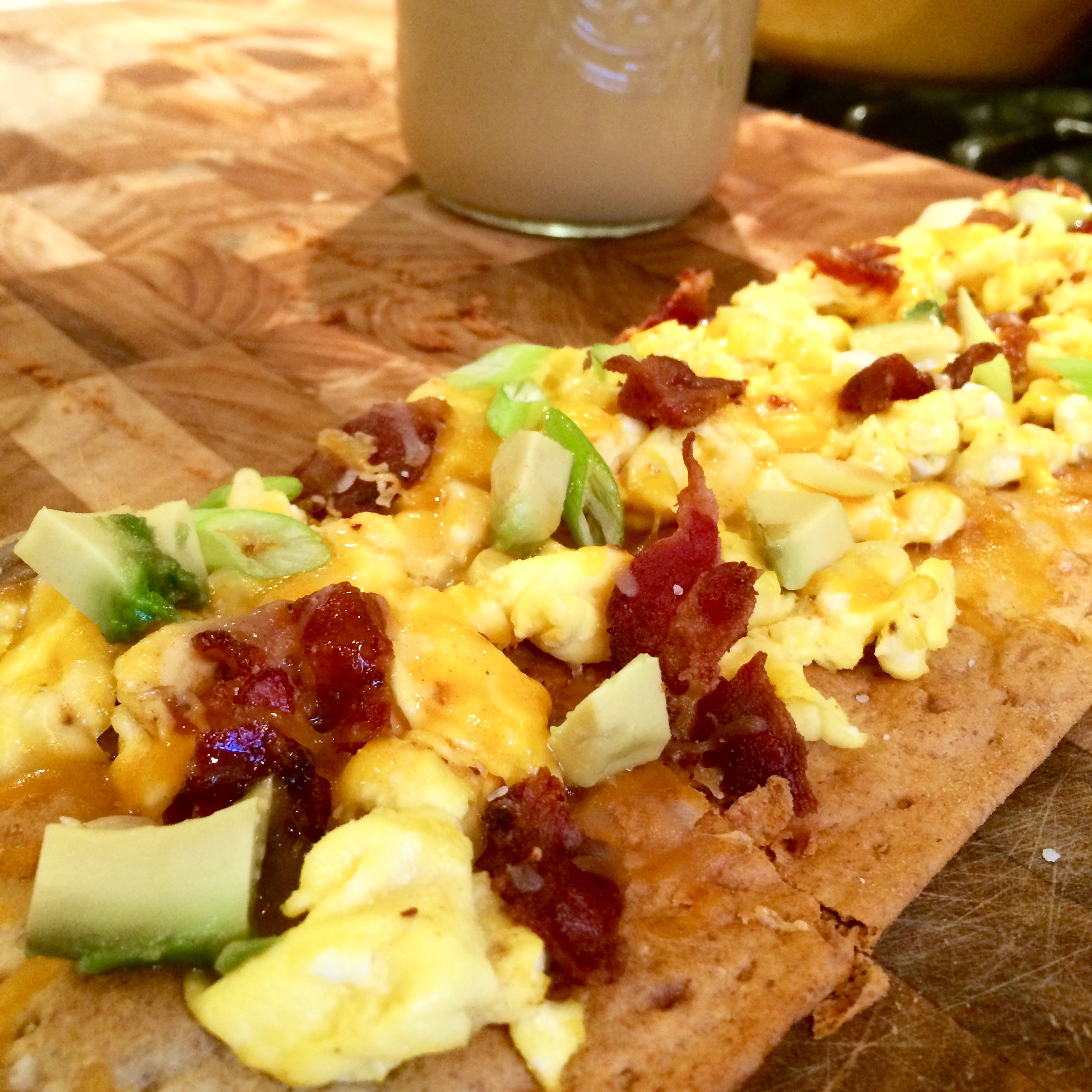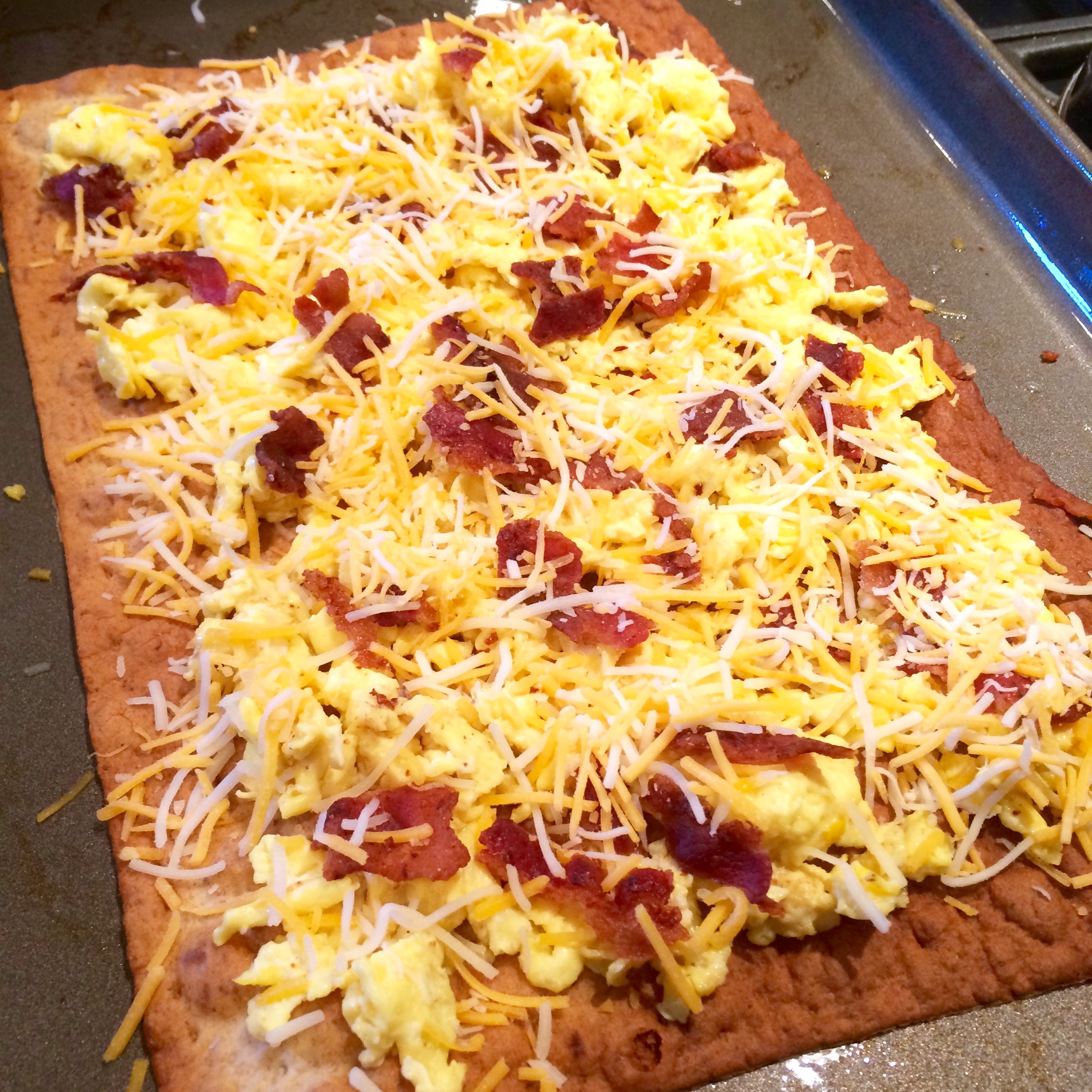 Now, top the lavash with the eggs, spreading evenly across the surface.