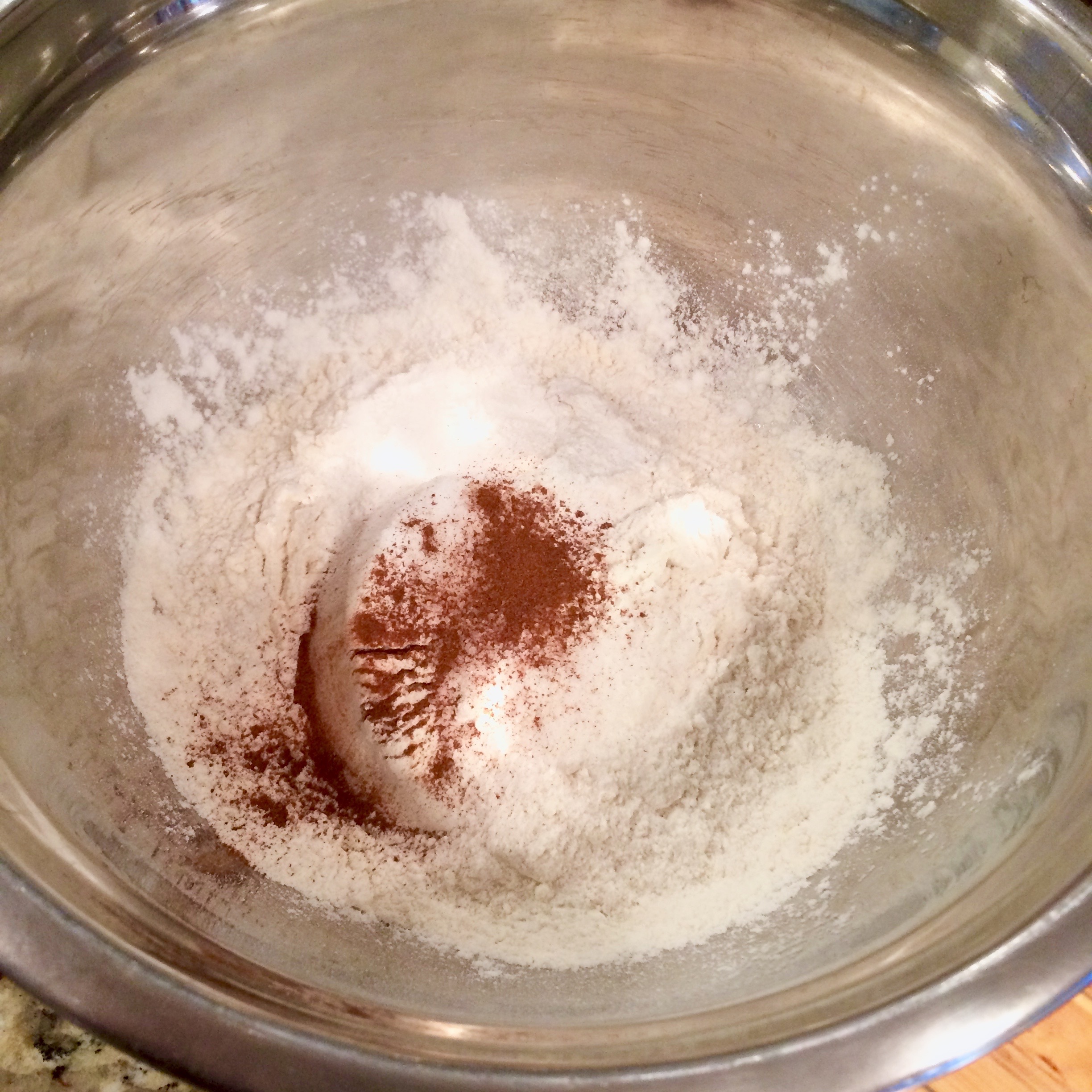 Whisk 2 cups flour, baking powder, 1/2 teaspoon cinnamon and salt together in medium bowl.