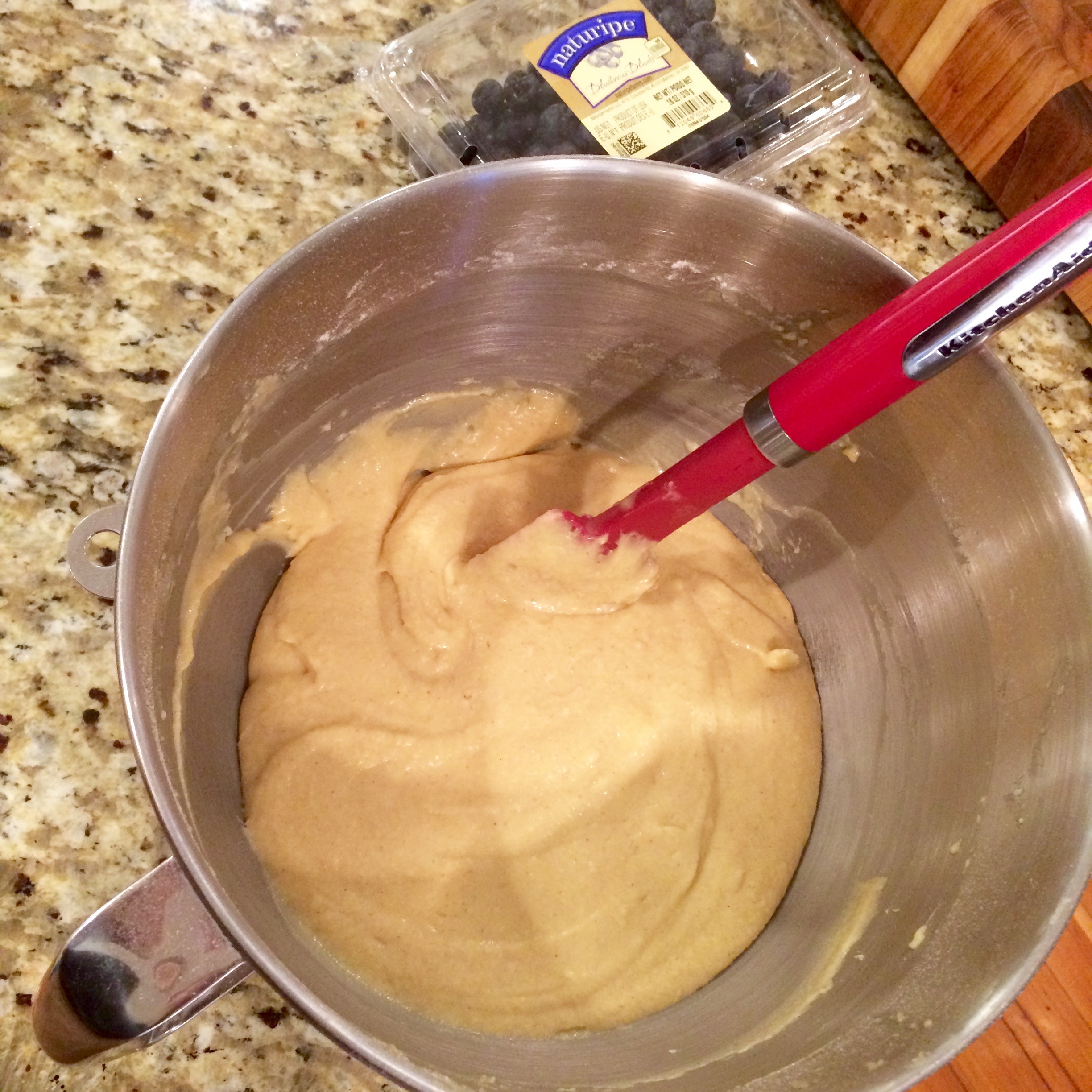 Using a spatula, gently fold in blueberries.