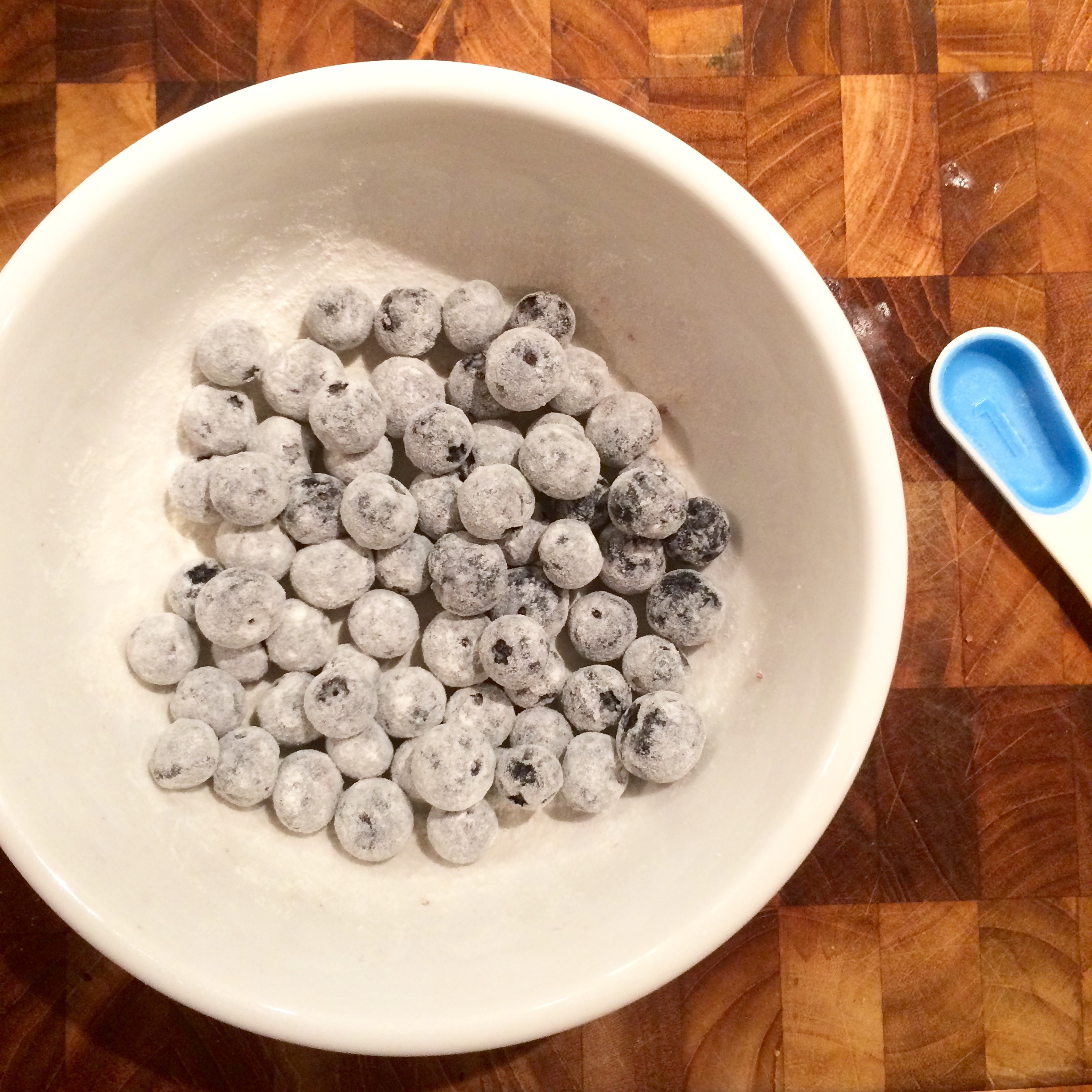 In a small bowl, toss the blueberries with remaining one teaspoon flour.