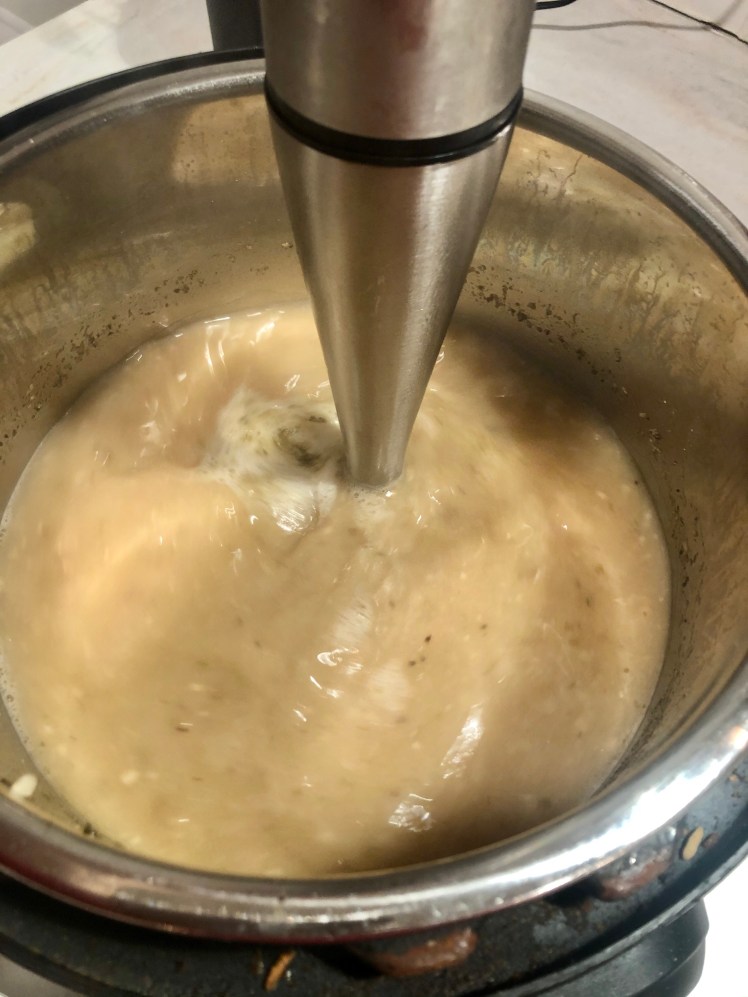 Optionally, if you want a thicker broth, use an immersion blender to purée the beans into the stock.