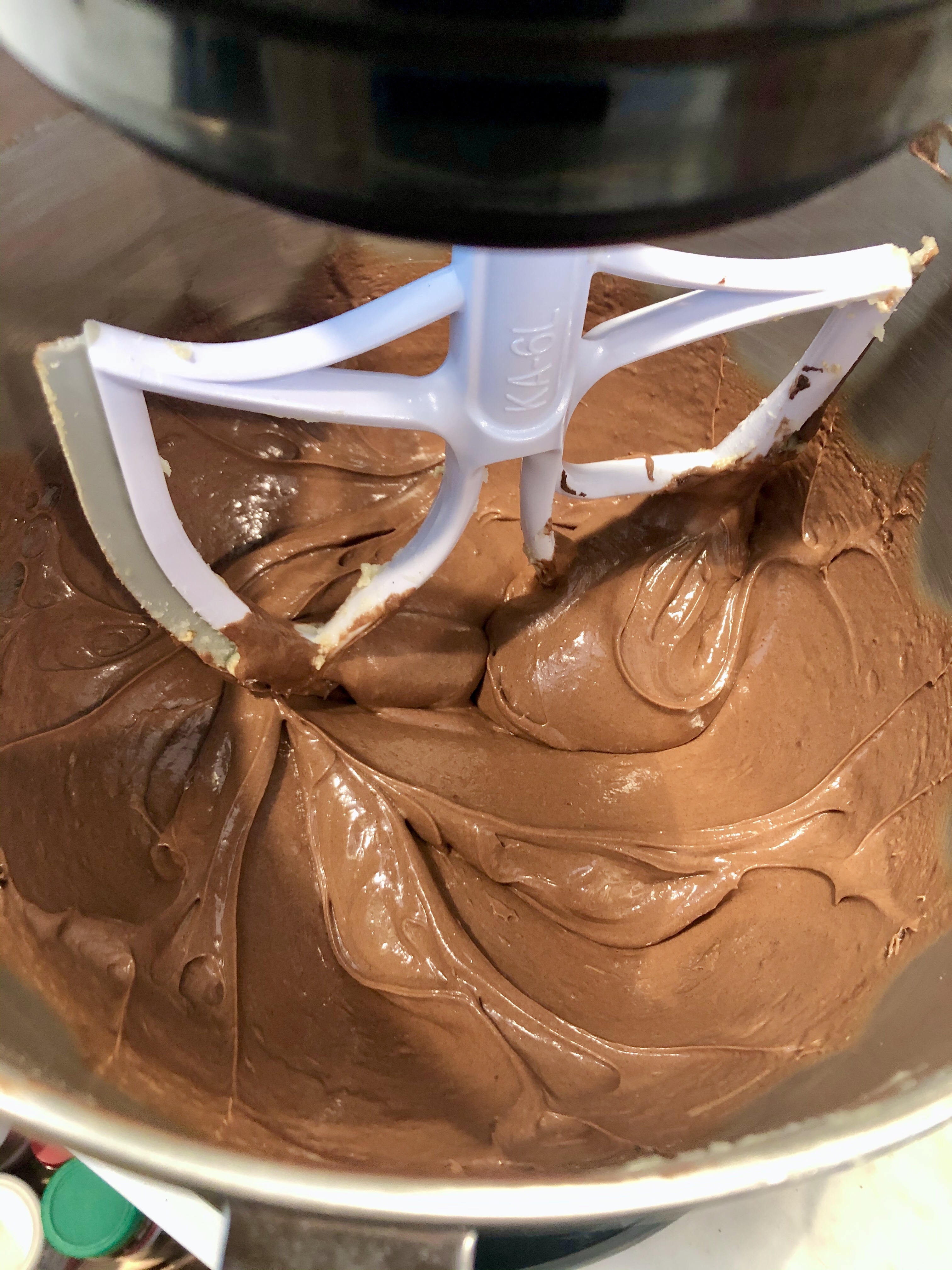 Add in the eggs, one at a time, and mix until thoroughly combined. Add in the vanilla, and mix to incorporate a lot of air (this helps with the crackly top) for a few minutes.